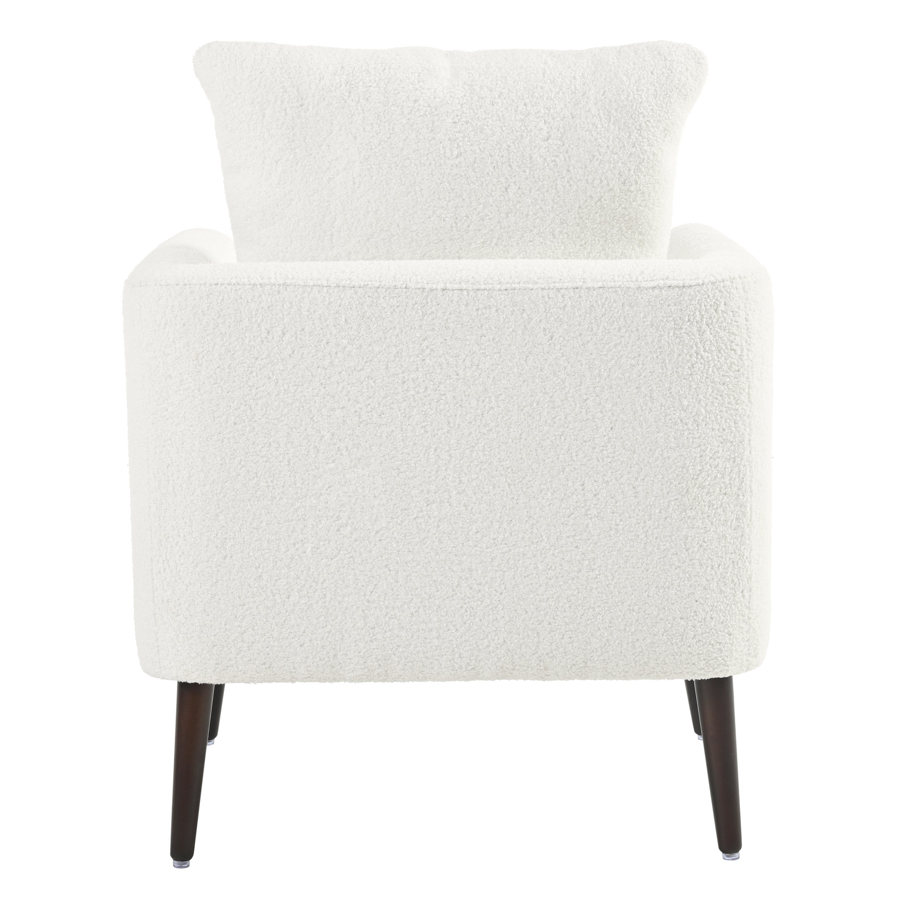 Modern Teddy Fabric Chair Foam-Padded Barrel Design with Rubberwood Base White