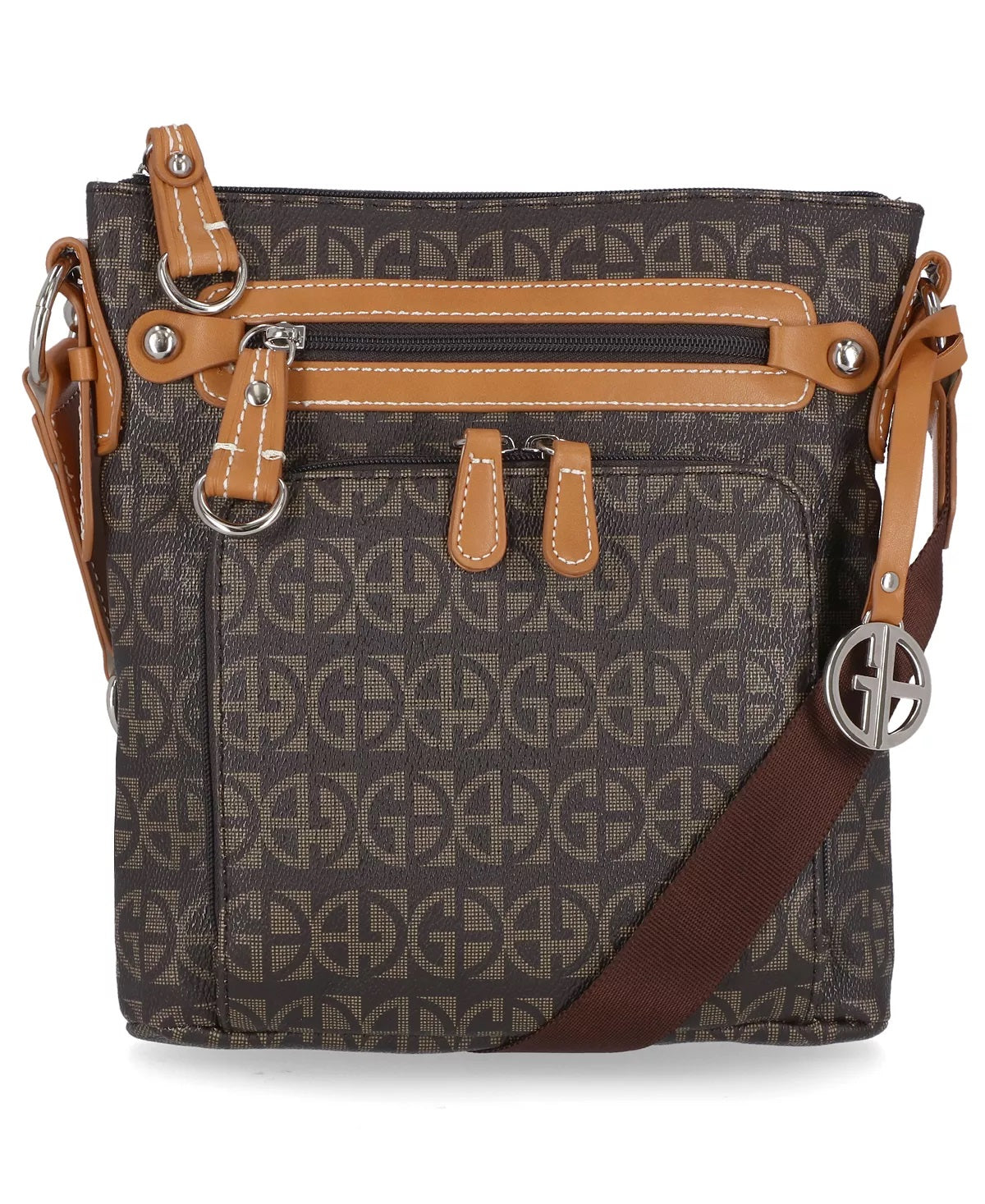 9-3/4 W x 9 H x 2 D; weight; 1.4lb (width is measured across the bottom of handbag)|Interior features zip pocket| 2 slip pockets and ID window|23L adjustable crossbody strap|Top zip closure|Exterior features silver-tone hardware| signature pattern all-over