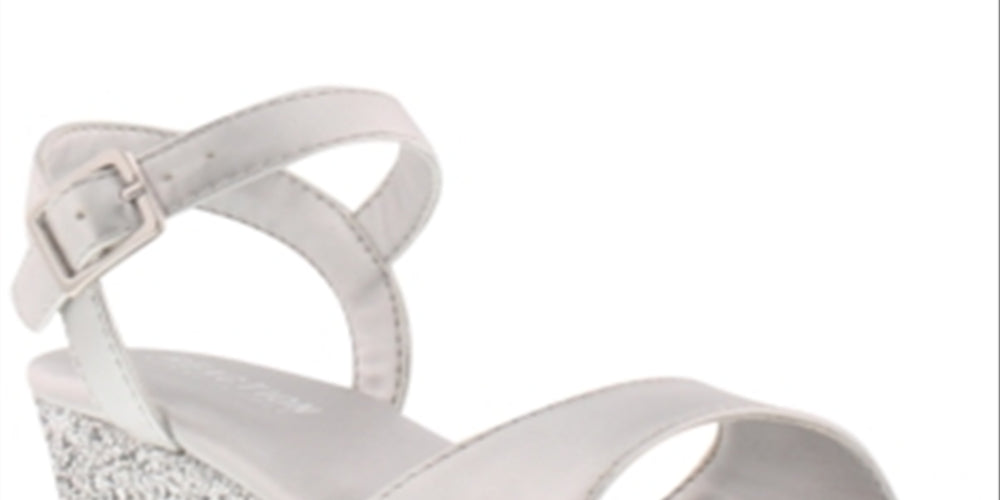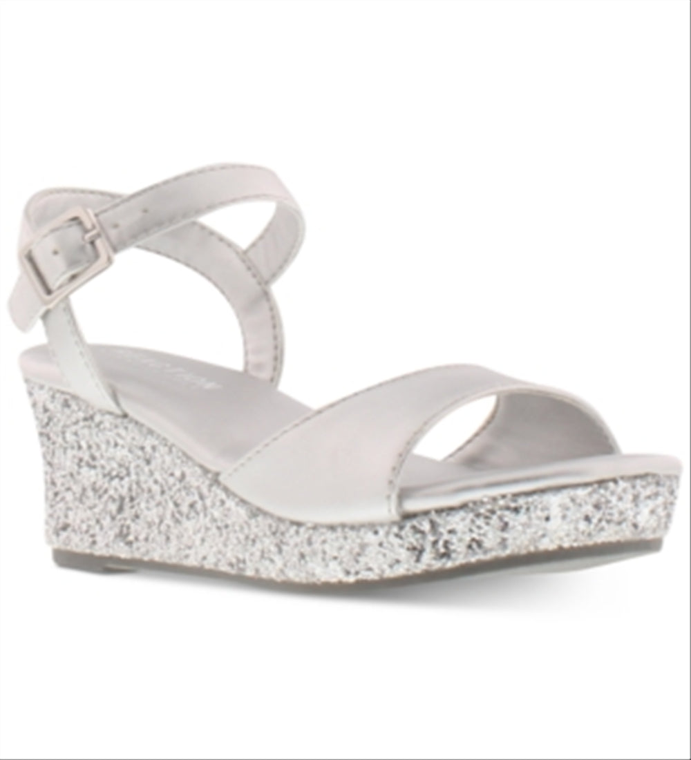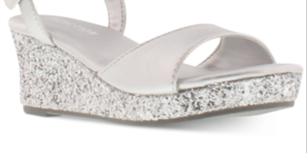 sparkling glitter adds a touch of glam to these breezy girls kenneth cole open-toe wedges| finished with a padded footbed for all day comfort