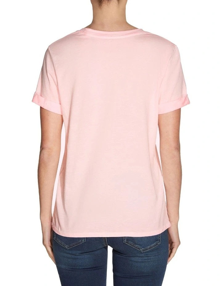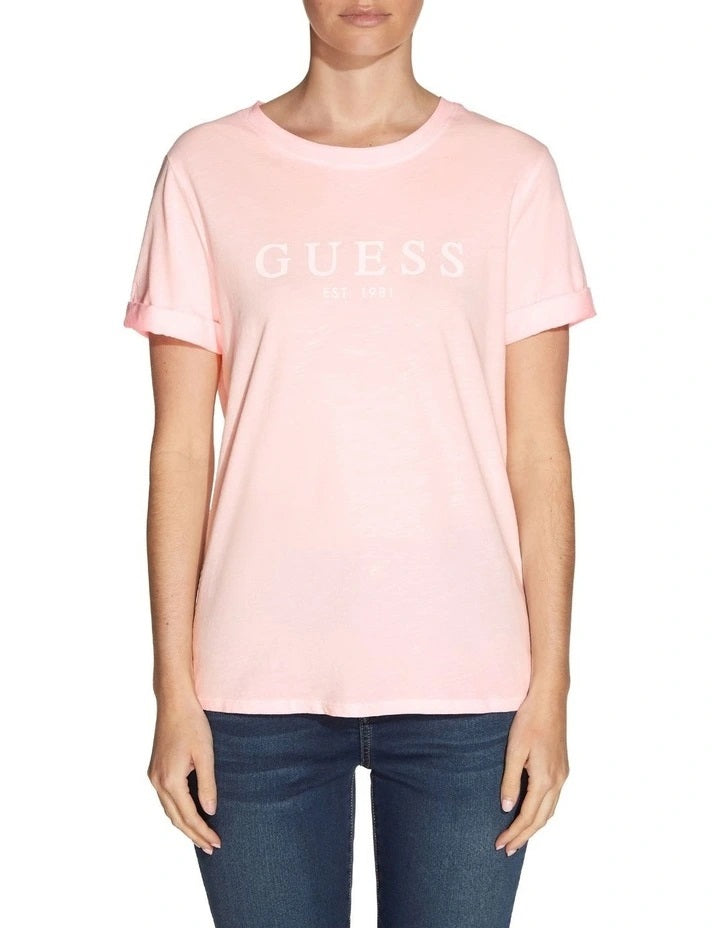 GUESS Women's 1981 Roll Cuff Logo Graphic Tee Pink Size Medium