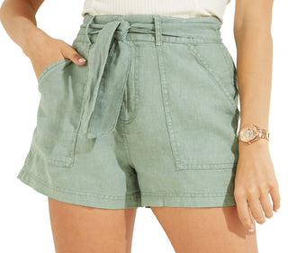 GUESS Women's Brynn Belted Linen Cargo Shorts Green Size Large