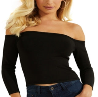 GUESS Women's Off The Shoulder Crop Top Black Size Large