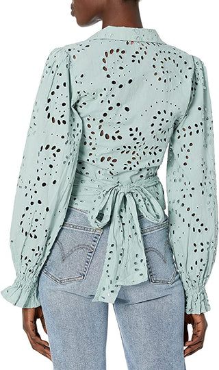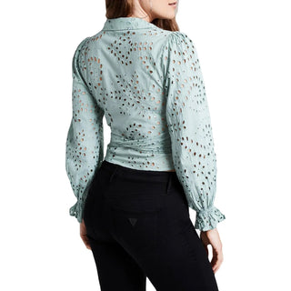 GUESS Women's Kamy Eyelet Wrap Blouse Green Size X-Large