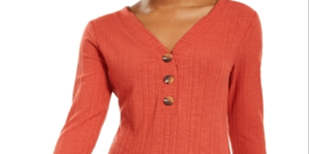 Hippie Rose Junior's Rib Knit Henley Bodysuit Red Size Large