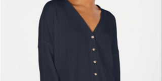 Hippie Rose Junior's Tie Hem V Neck Top Grey Size Large