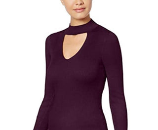 Hippie Rose Juniors' Mock-Neck Cutout Sweater Purple Size Medium