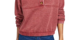 Hippie Rose Juniors' Mock-Neck Sweatshirt Brown Size Large