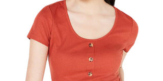Hippie Rose Junior's Button Front Rib Knit T-Shirt Brown Size X-Small