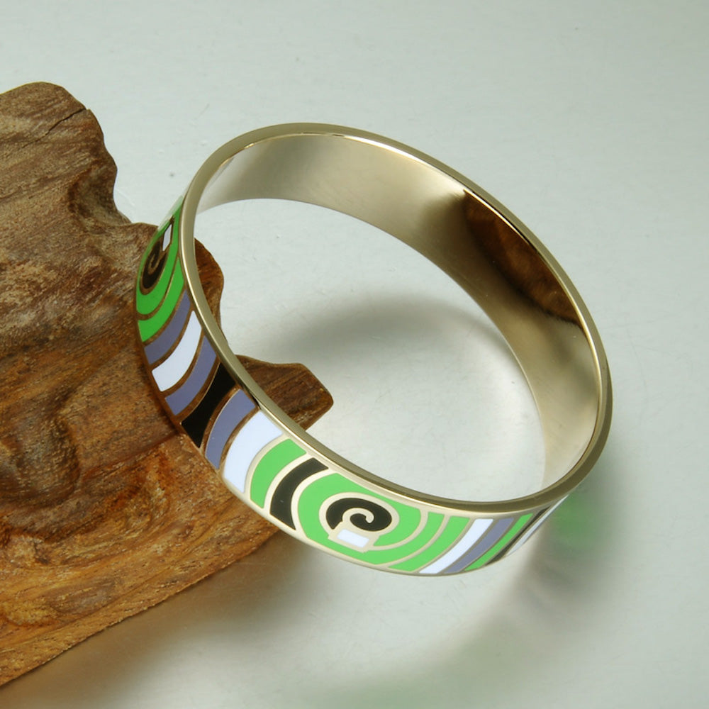 HANDMADE: All Homvare Enamel Bracelet are handmade with exceptional attention to detail. The colors of enamel are vibrant and won’t fade with time or wear out. | GORGEOUS: The bracelets are finished with beautiful abstract geometrical patterns. Stack them for an extra statement, or wear it alone for elegant simplicity. The bracelet is a unique colorful addition to any occasion and is a perfect fashion accessory for daily dressing up. Top quality craftsmanship and delicate design look amazing. | 18K GOLD PLATED: All bracelets are made with stainless steel and feature 18K gold plating with enamel. Colorful patterns are easy to match with clothes of different colors and styles: casual, evening or formal. Our bracelets make updating your outfit a piece of cake. | PERFECT GIFT: Wonderful gift for every woman and girl. It makes a great present for Valentine’s Day, birthdays, anniversaries or any special occasion. Wrapped in a luxurious velvet gift bag, it is a beautiful bracelet worth possessing. | DIMENSION: Diameter: 2.5”, Width: 1/2”, Weight: 55 gm. Package Includes 1 Bracelet and luxurious royal burgundy velvet gift bag.