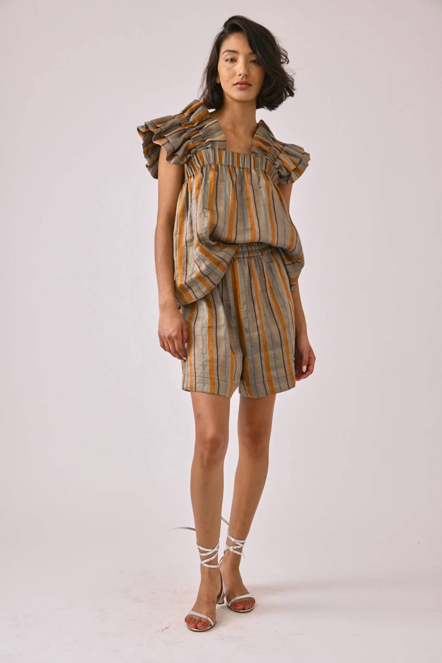 Fit to perfection, we love these high-waist shorts and you will too. Introducing the Inclan Sterling Short in Moroccan Stripe, a stylish nod to 90s fashion perfect for warm spring days. These high-waist shorts feature a loose fit for maximum comfort, crafted from an 87% Linen, 12% PA, 1% PL blend, ensuring lightweight and breathable wear. They include a practical pull-on closure with an elastic band, adding extra ease and comfort to your beach day ensemble. Complete with pockets, these shorts effortlessly blend function with style.