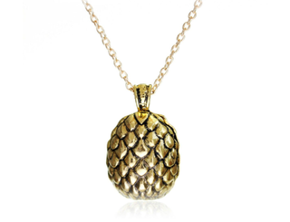 Gold Dragon Egg Pendant Necklace – Antique Fantasy-Inspired Jewelry with Textured Scale Design, 18" Chain