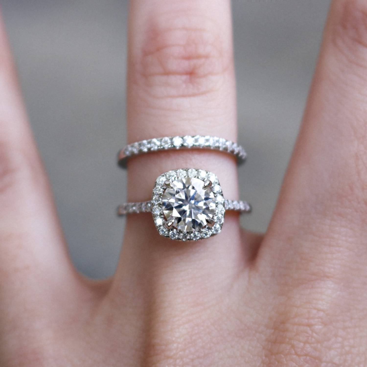 This ring will be your favorite go-to piece of the season. Introducing the Women's Moissanite Wedding Ring Set by Allyanna Gifts, a fine sterling silver creation perfect for timeless elegance. This stunning set features a VVS1 D Color Moissanite stone, complemented by a moissanite wedding band and an exquisite halo ring, promising to make your special day truly unforgettable. With its alluring brilliance and sophisticated design, this set captures the essence of eternal beauty. Crafted from high-quality sterling silver, it embodies the sophistication and elegance every bride deserves.