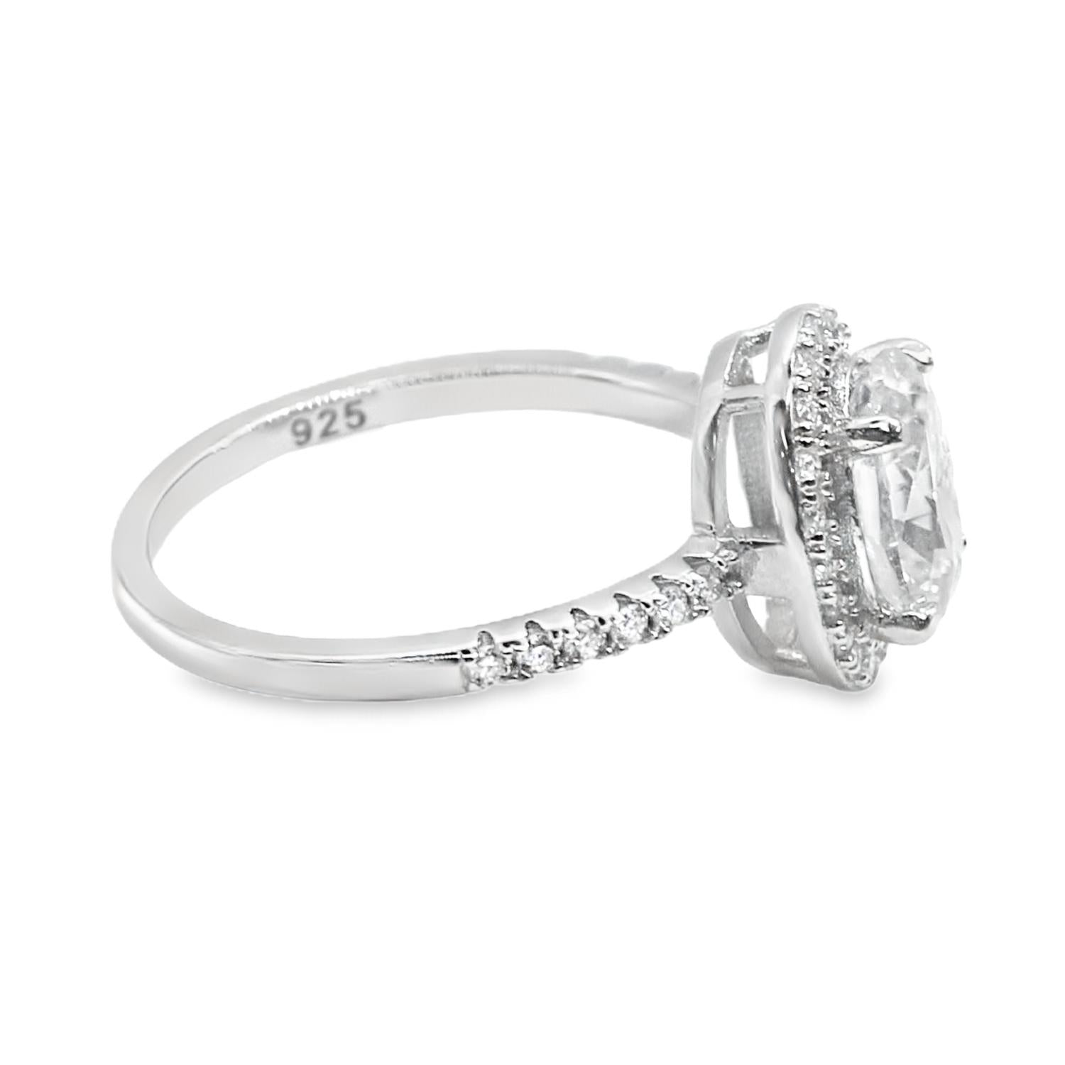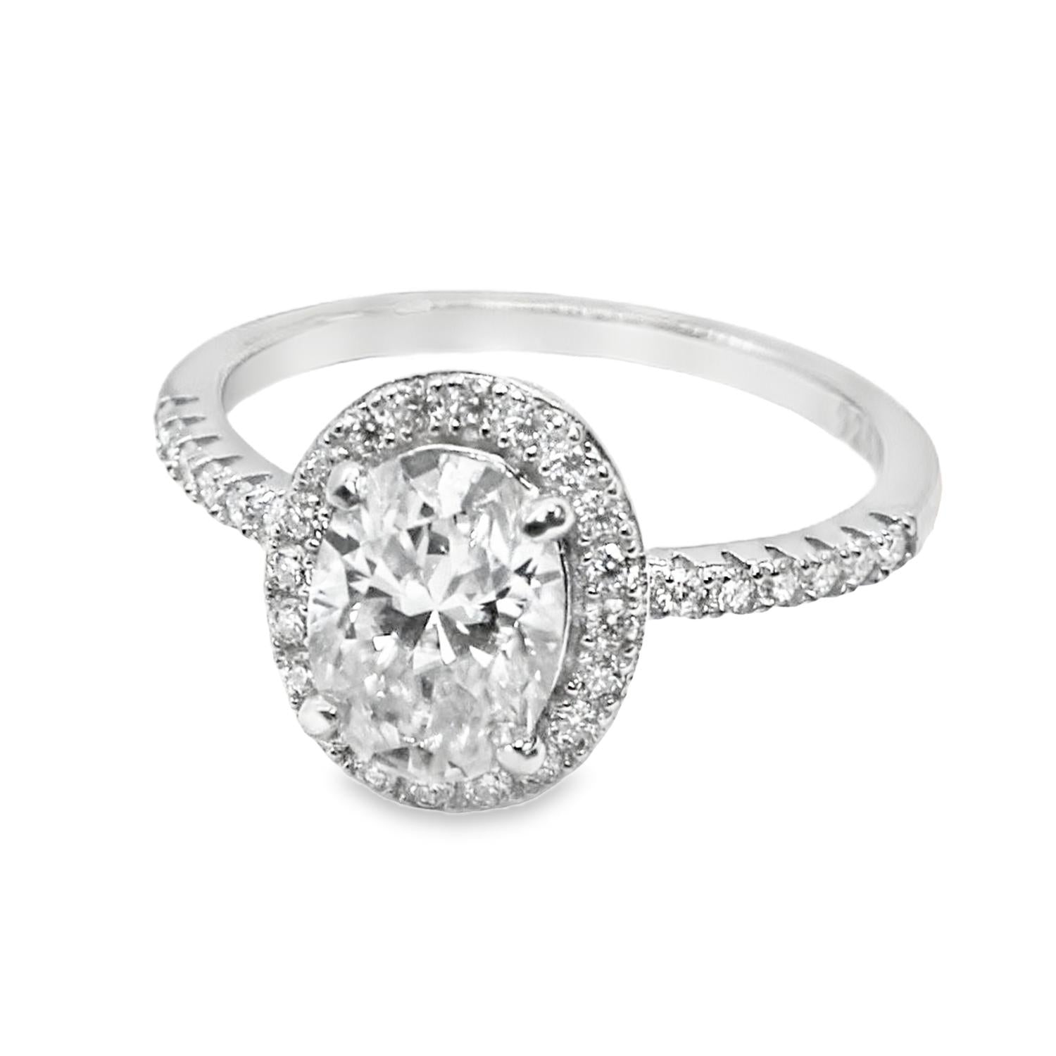 Introducing the Women's Oval Moissanite with Halo Ring by Allyanna Gifts, a captivating piece perfect for those who appreciate elegance and sophistication. This ring showcases a 6MM x 8MM oval-cut Moissanite center stone, set within a dazzling halo in sterling silver. Its intricate design effortlessly draws attention, making it a standout accessory for any occasion. Composition: Sterling Silver. Carat Size: 1.5CT Moissanite.