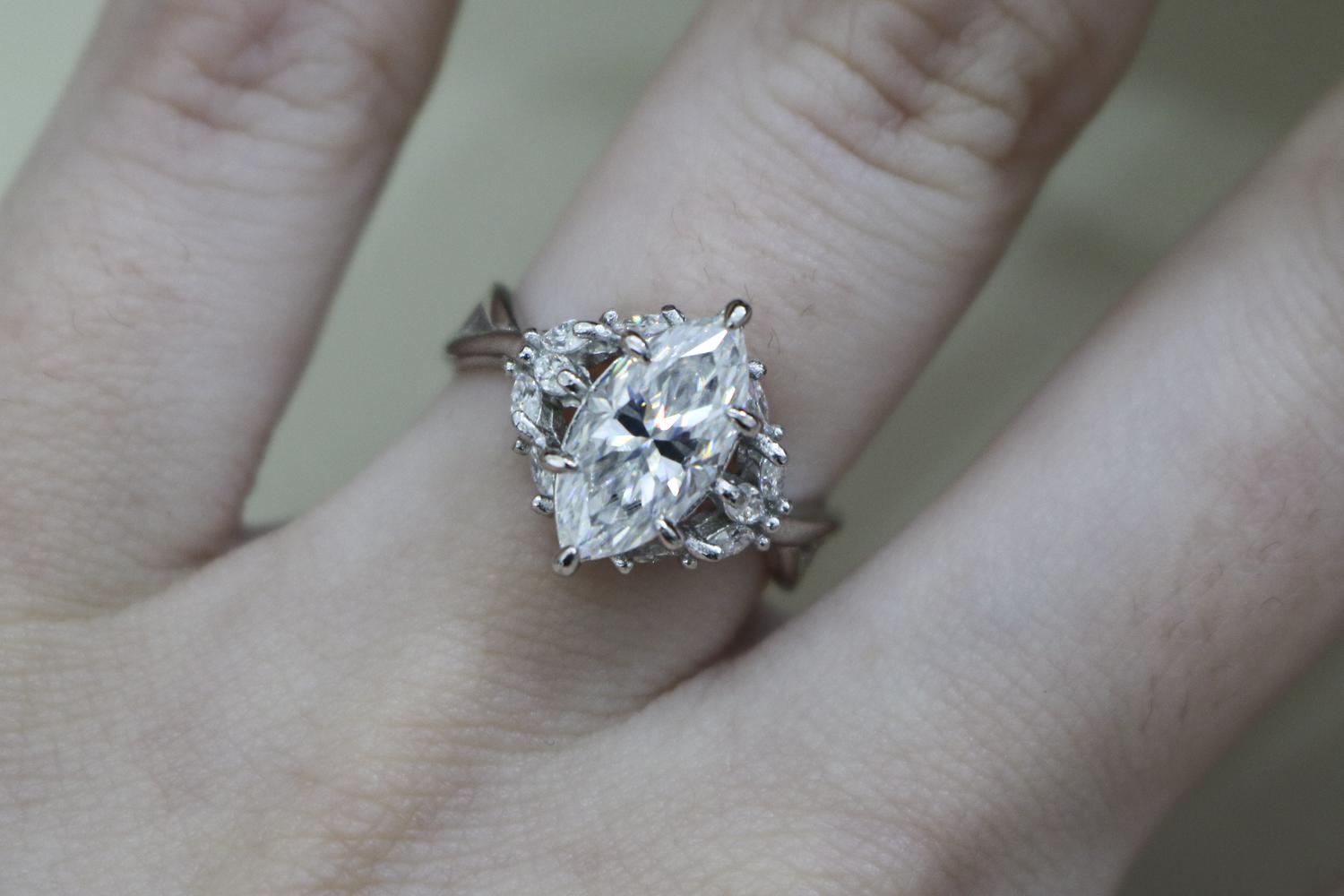 Wear this ring stacked or by itself... you can't go wrong. Experience the elegance of the Women's Sterling Silver Marquise Moissanite Cluster Ring by Allyanna Gifts, a timeless piece in classic silver. This fine ring showcases a marquise-shaped moissanite gemstone set in premium sterling silver, perfect for adding a touch of luxury to any outfit. Embrace this exquisite design that highlights both sophistication and sparkle with every wear.
