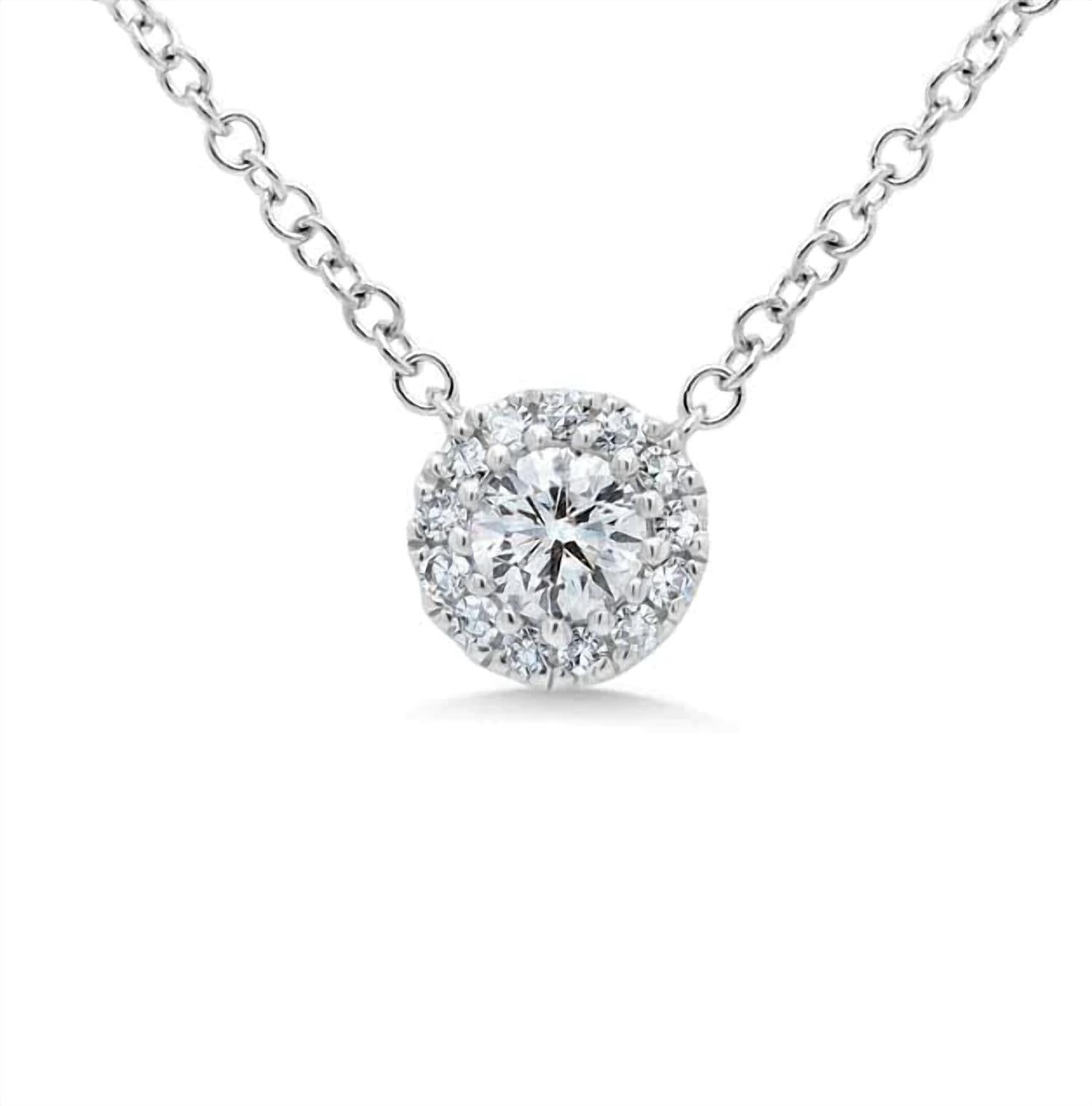 Introducing the 0.14 Cts Diamond Halo Pendant by Diana M Jewels, a stunning piece crafted in 14k white gold. This exquisite pendant features a halo design adorned with a total of 0.14 carats of twinkling round diamonds, making it a truly captivating accessory. Crafted with meticulous attention to detail, this pendant embodies timeless elegance. SKU: SC55002695