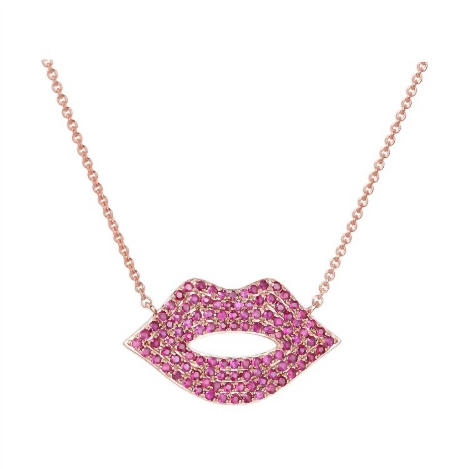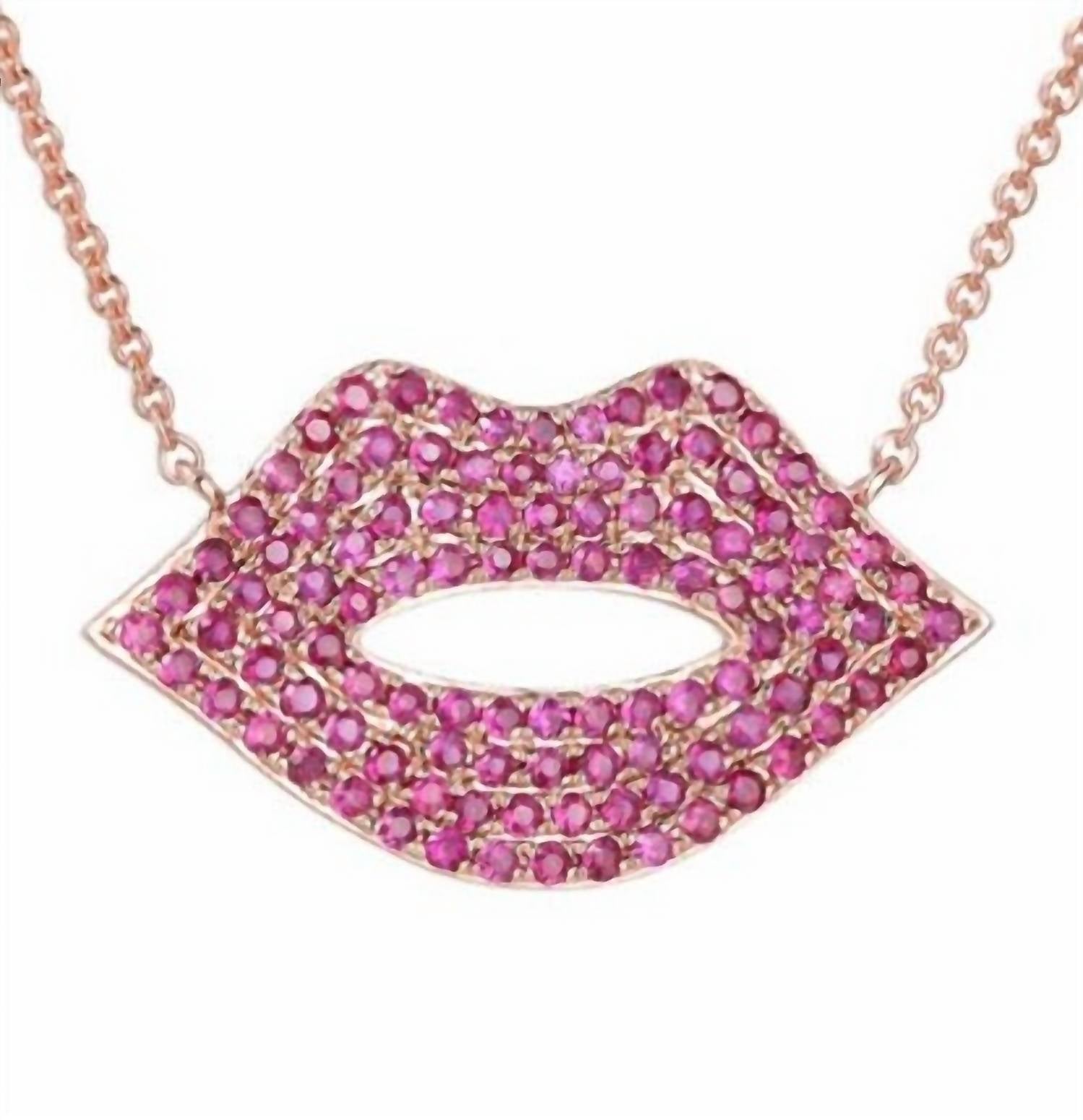 Both understated and impactful, you'll be reaching for this one-of-a-kind necklace season after season. Elevate your elegance with the 0.60 Cts Rubies Pave Lips Necklace by Diana M Jewels. Crafted from fine 14k rose gold, this exquisite necklace showcases 76 natural round brilliant rubies totaling a carat weight of 0.60, highlighted by a captivating pink hue. Featuring a secure lobster clasp, this piece embodies luxury with a sophisticated prong setting. Bereft of a birthstone for July, it requires gentle care to maintain its radiant sparkle. SKU: KAN56580F-003