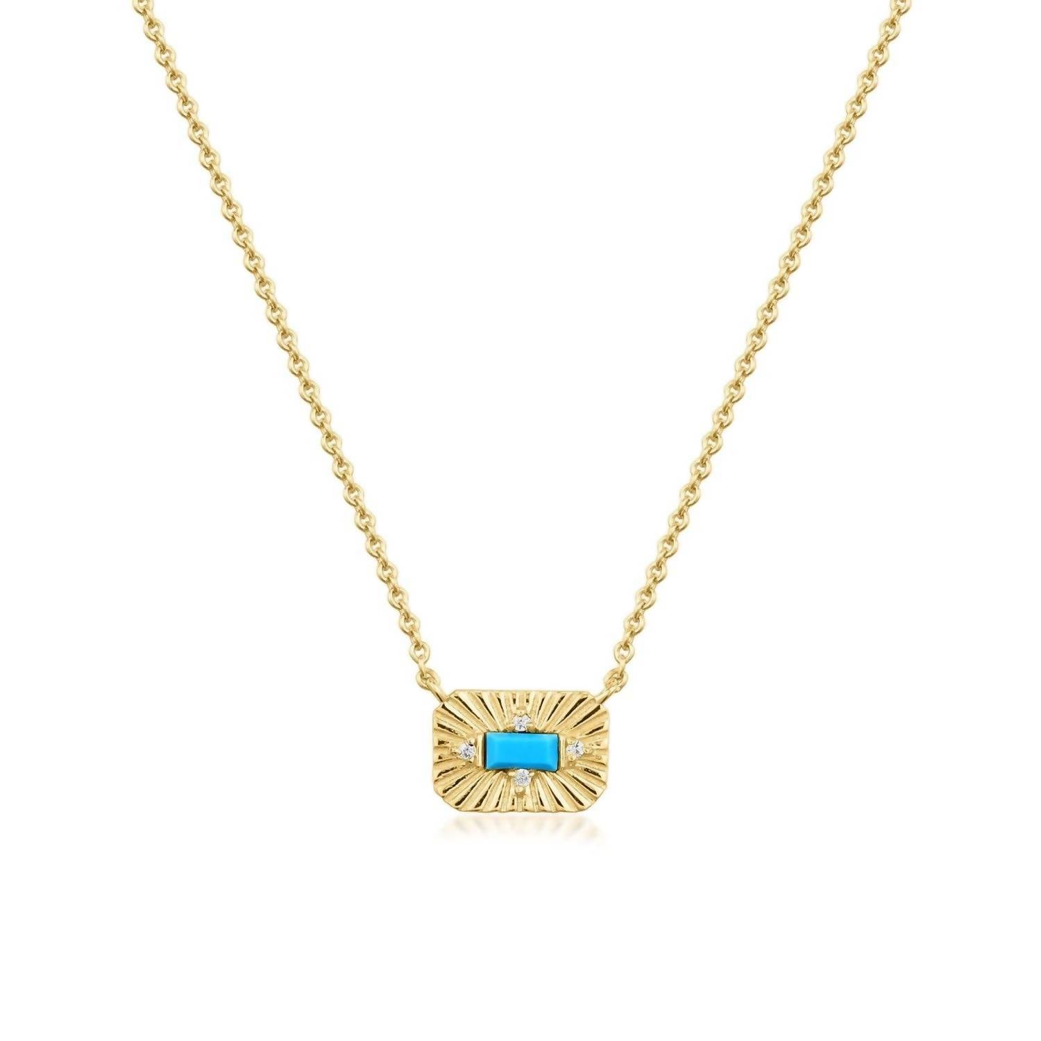 Eklexic - Small Starburst Pendant With Turquoise Stone Necklace