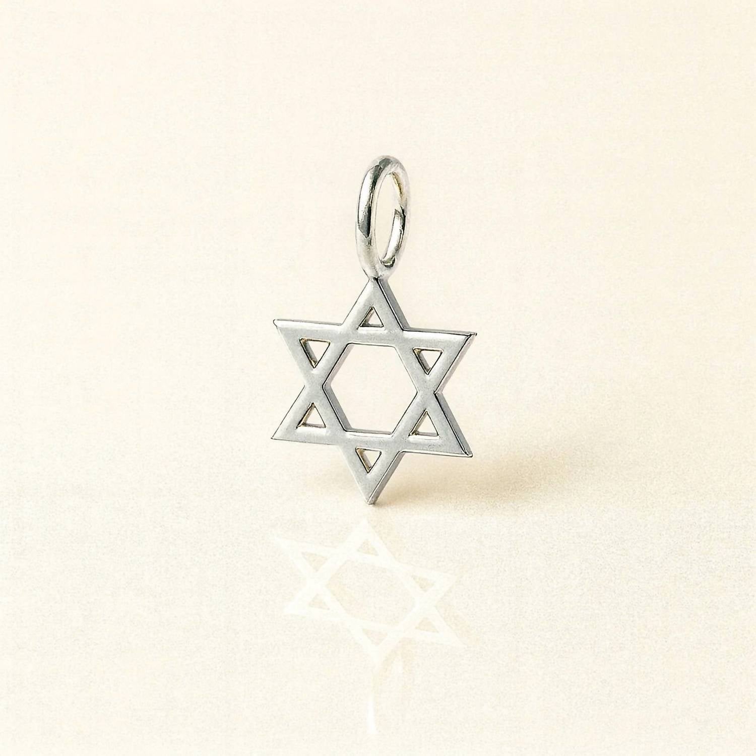 Discover the Women's Star Of David Pendant by Eklexic, a symbol of tradition and timeless style. Crafted from sustainable recycled brass, this piece is plated with a choice of 14k gold or rhodium for a chic finish. It measures 16.5mm in width and 23.4mm in height, providing a delicate yet statement-making presence. Handcrafted in the USA by skilled artisans, this pendant is a meaningful accessory for daily wear or as a thoughtful gift.