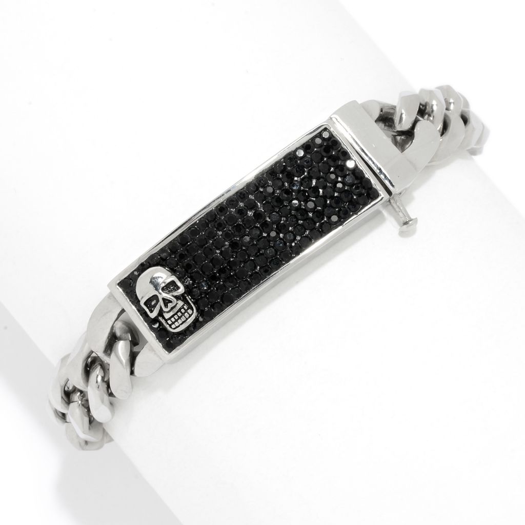 • Design Details: The ID tag is adorned with a collection of round cut 1.5mm black crystals, adding a touch of elegance. Choose between a skull or cross emblem to personalize your look.