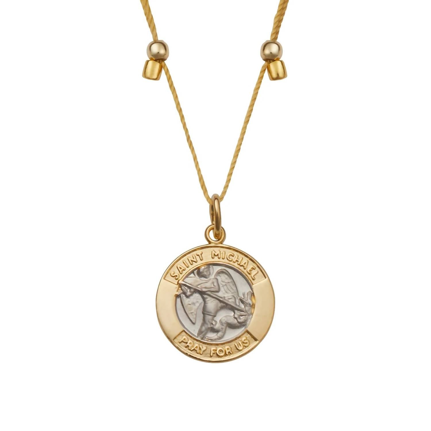 The perfect stand-out necklace that complements even the most basic t-shirt. Introducing the Saint Michael Necklace by &LIVY, a piece that combines elegance and spiritual significance. This necklace is crafted from luxurious yellow gold and features an eye-catching two-toned finish on gold. Wear it as a reminder of protection and confidence, whether you're facing life's challenges or daily routines. With its exquisite design, it is perfect for adding a touch of meaning to any outfit.