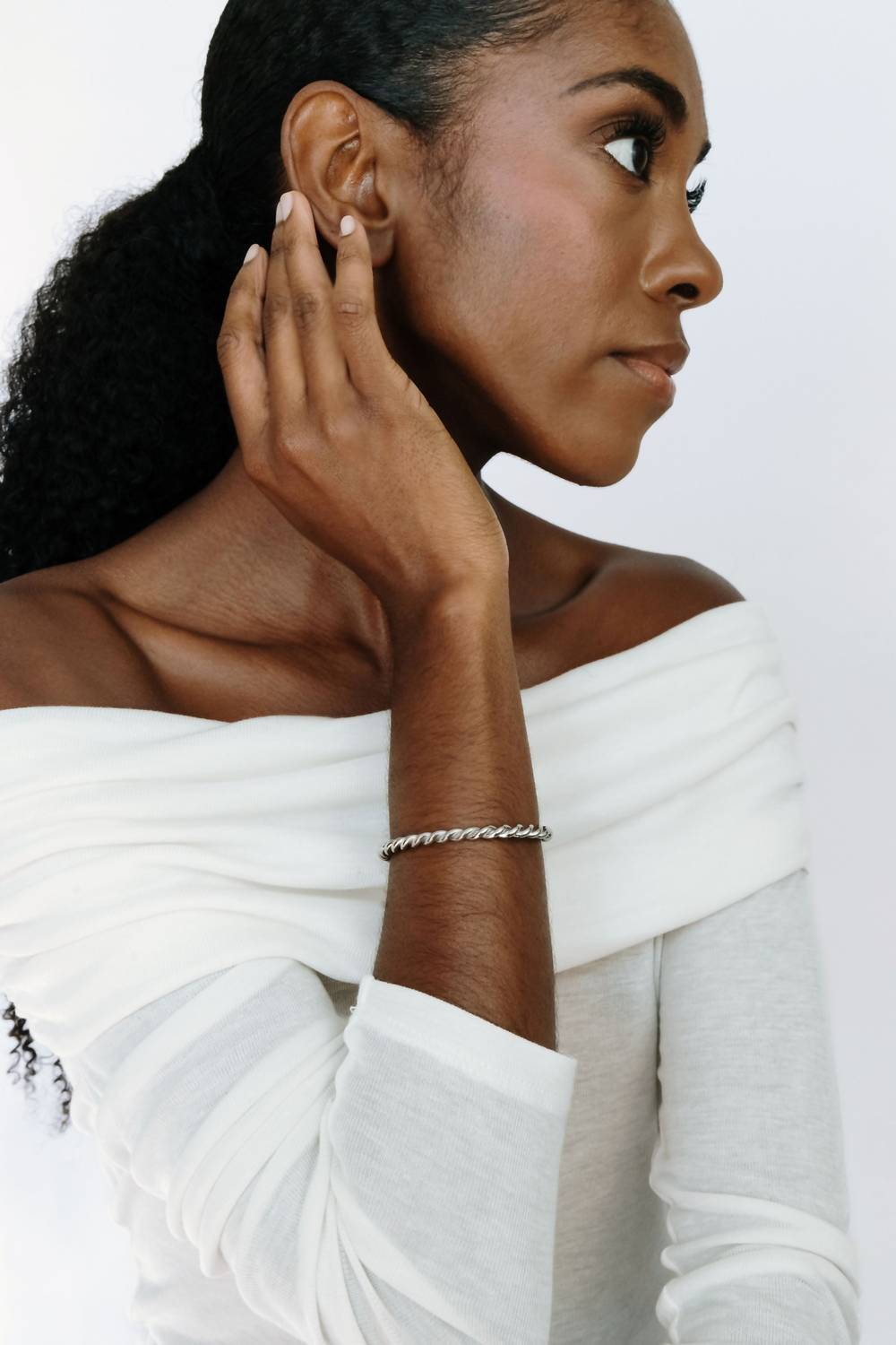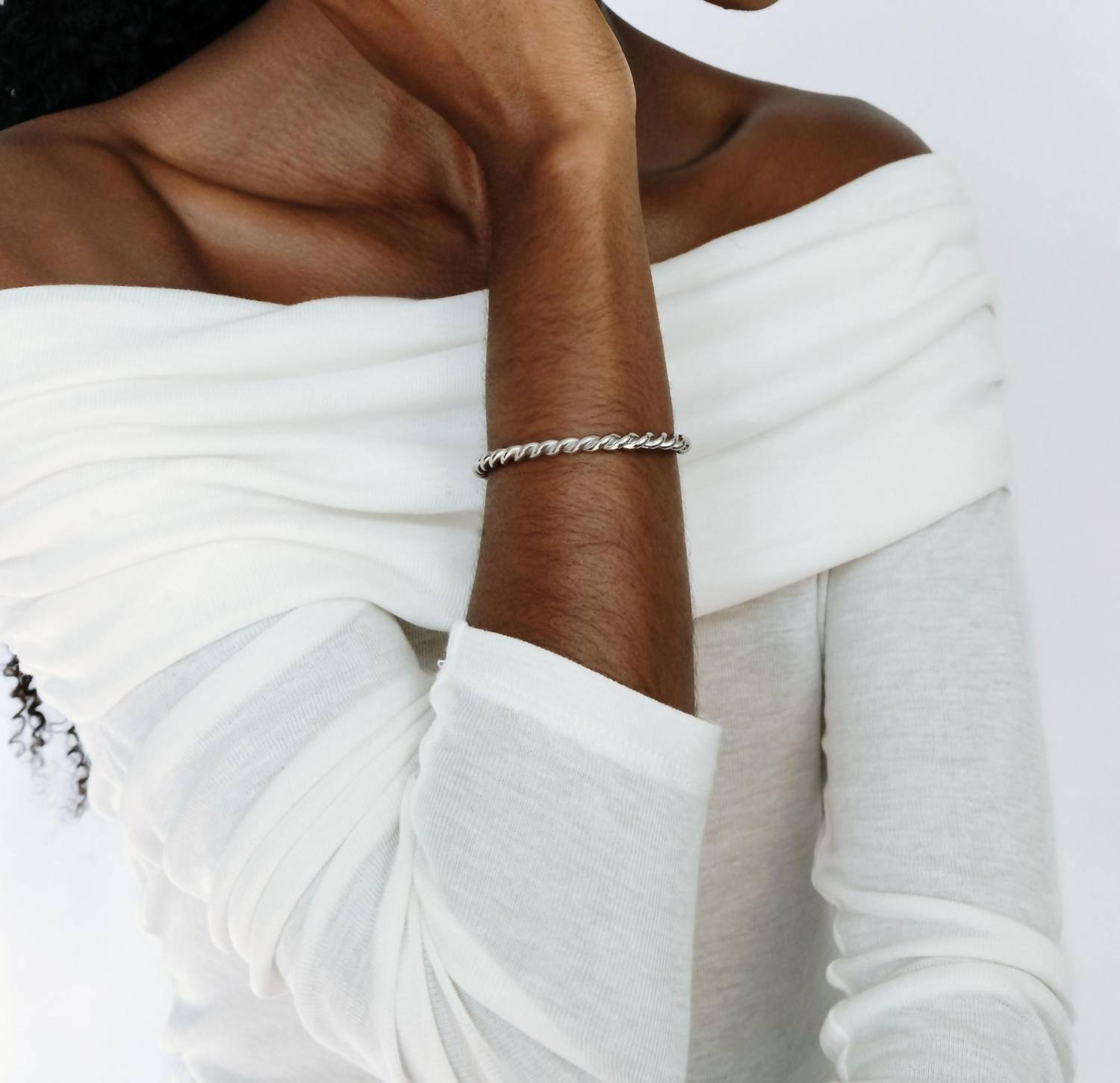 This bracelet will be your favorite go-to piece of the season. Enhance your style with the Women's Rita Cuff by Marrin Costello, a sophisticated bracelet perfect for any occasion. Crafted from high-polished stainless steel, this hypoallergenic, non-tarnish, and water-resistant cuff features an adjustable opening for a personalized fit. With a length of 2.5 inches and a diameter of 1.25 inches, the cuff combines elegance with comfort. Whether worn alone or layered with a wristwatch, the twisted motif adds a touch of luxury to your look.