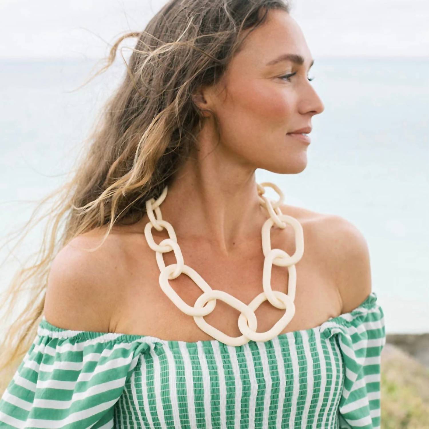 Both understated and impactful, you'll be reaching for this one-of-a-kind necklace season after season. Enhance your look with the Women's Matte Link Necklace by Sunshine Tienda, a striking piece that stands out with its vibrant pink matte finish. Crafted from high-quality horn and featuring a black toggle clasp, this necklace measures 24 inches in length for a standout appearance. The natural horn color may vary slightly, adding to the uniqueness of each piece, sourced responsibly from Vietnamese Water Buffalo. Embrace the natural beauty and cultural craftsmanship of this silver-plated horn necklace.