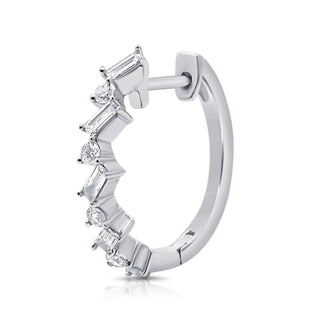 Diana M Jewels - 10 Baggett And Round Diamonds Huggie Earrings