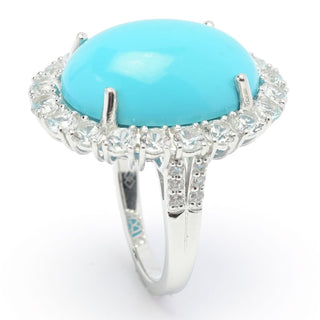 Gem Treasures 20x15mm Sleeping Beauty Turquoise & Zircon Halo Ring