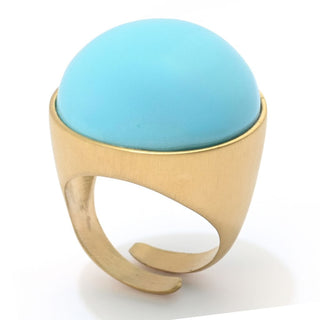 Bello Italiano 18K Gold Plated Turquoise or Orange Agate Statement Ring