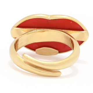 Bello Italiano 18K Gold Plated "Rossetto" Red Coral Lips Ring