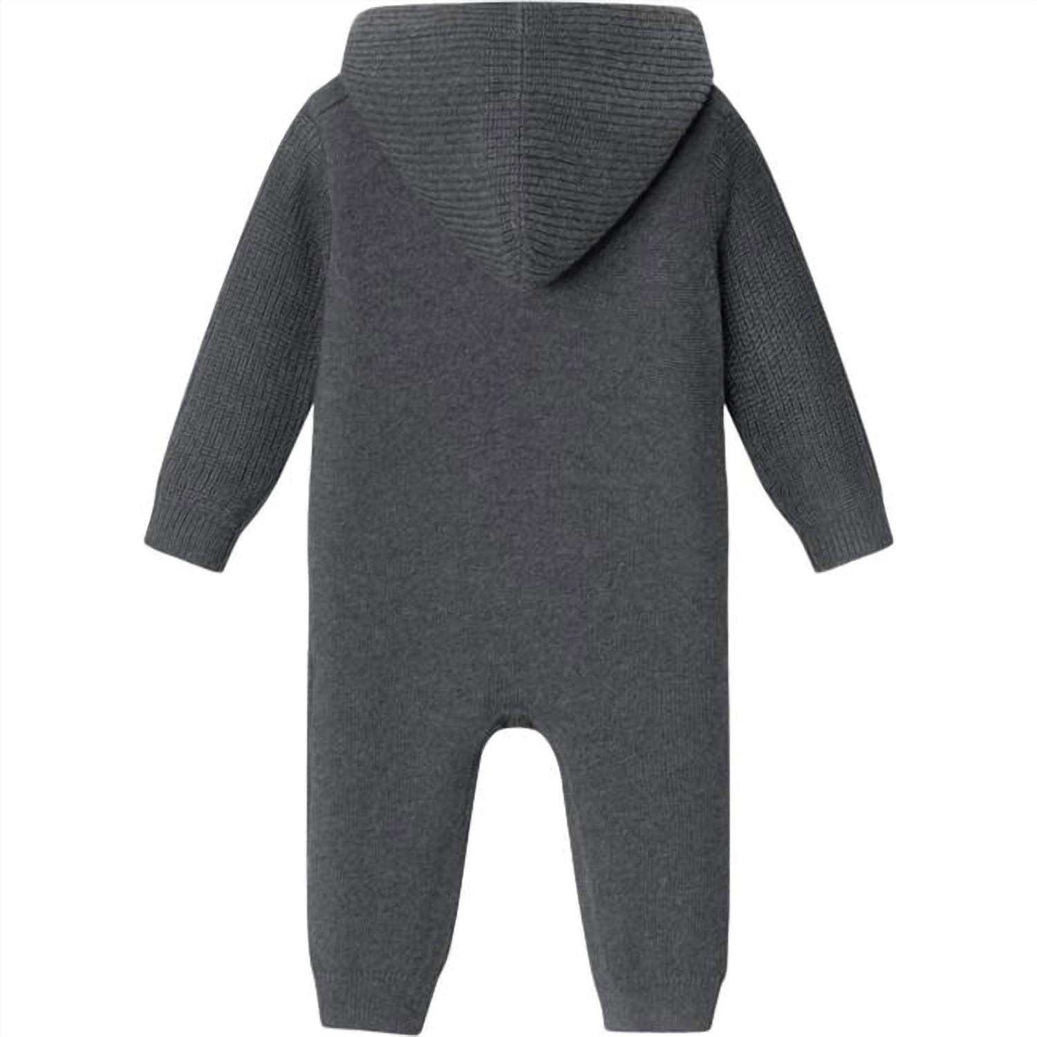 Wrap your little one in the Andy & Evan Hooded Toggle Sweater Romper, the perfect blend of warmth and style. This romper features a cozy hood and charming toggle closures, embodying a classic look in solid charcoal. Made from 100% cotton, this piece offers comfort and durability for your child's fall adventures. Easy to care for, simply machine wash cold and tumble dry on medium; ironing is optional if needed.