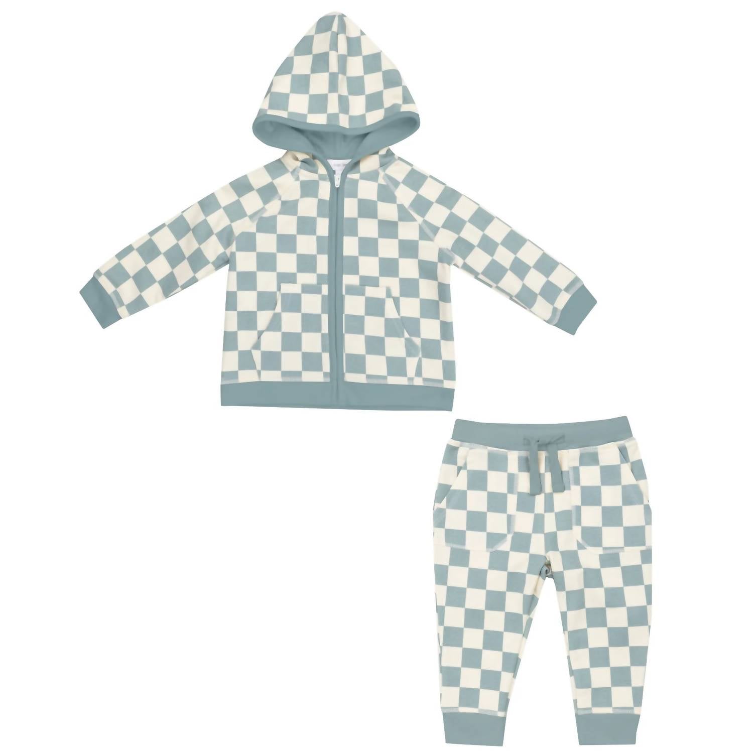 Dress your little one in style with the Angel Dear Boy's Hoodie and Jogger Pants set, perfect for a vacation-ready look. Made from a 95% organic cotton and 5% spandex blend, this cotton blend ensemble promises comfort and flexibility. The checkerboard gray mist pattern adds a vintage plaid and check charm, tailored specifically for the little trendsetters. Care: Machine wash cold, line dry or dry low heat.