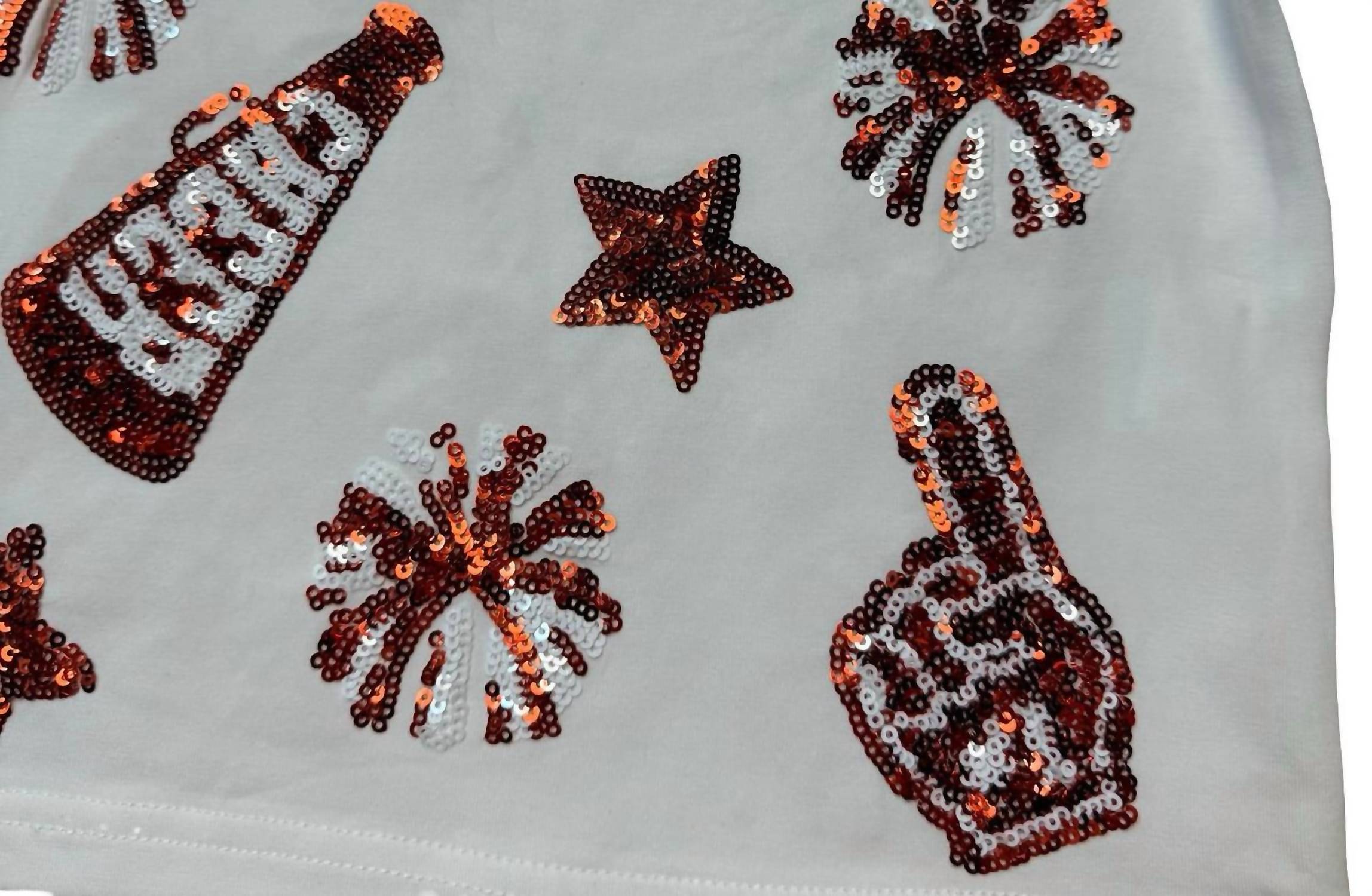 Elevate your game day attire with the Girl's Cheer Shirt by Belle Cher, perfect for showcasing school spirit. Featuring short sleeves and a crewneck design, this tee combines comfort with an eye-catching graphic pattern, perfect for any cheerleader. In striking maroon and white, it's the ultimate streetwear trend for summer activewear. Originating from a well-loved brand, it's a stylish choice for cheering on the sidelines.