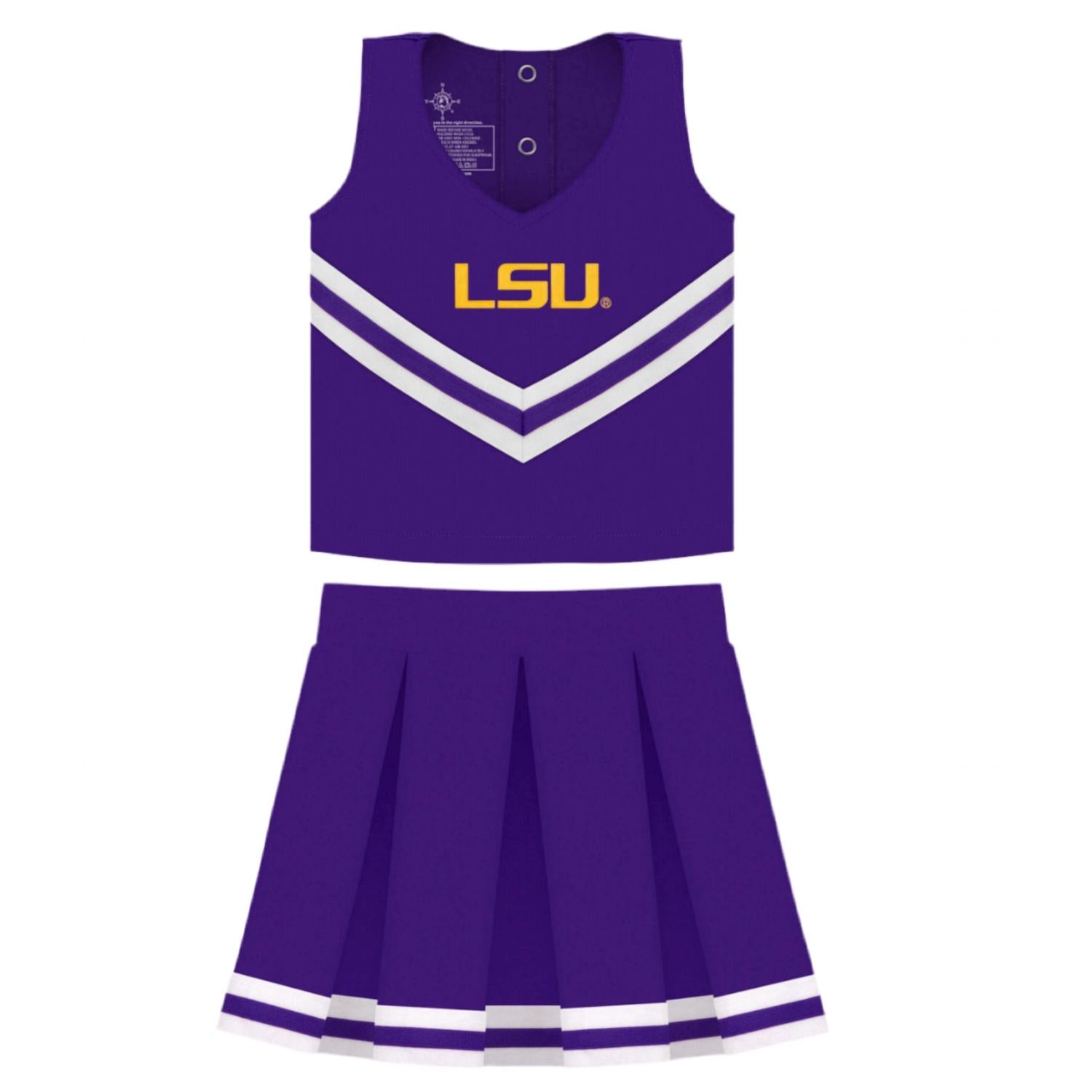 Get your young fan game-day ready with the Girl's Cheerleading Outfit by Creative Knitwear, tailored for spirited performances. This children's cheerleading set, in University Of Texas Burnt Orange, includes a top, a pleated skirt with a side zipper, and a matching bloomer, all crafted from 100% polyester. Designed to be soft and durable, this outfit supports energetic jumping, dancing, and cheering for the Longhorns. Proudly featuring official team embroidery, it's the perfect way to show team spirit.