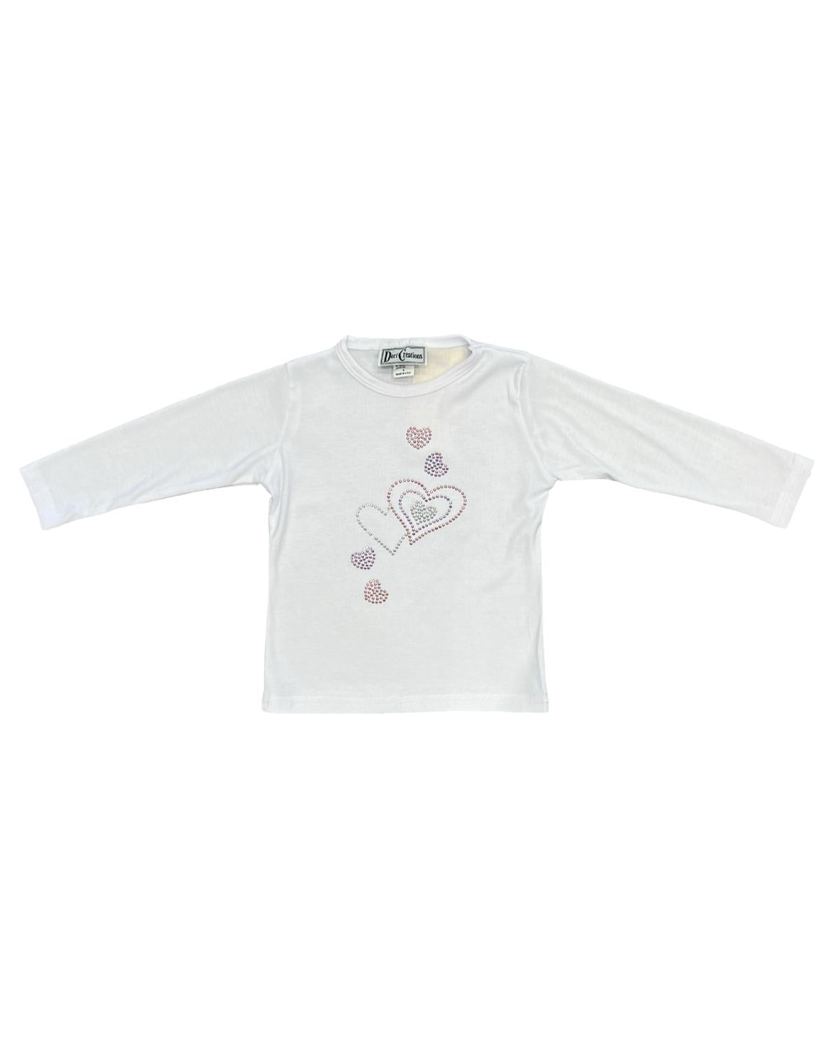 Charming addition for your little one's wardrobe. Crafted from ribbed fabric in a crisp white and adorned with light pink and lavender rhinestone hearts, perfect for minimalist fall fashion and Valentine's Day occasions.