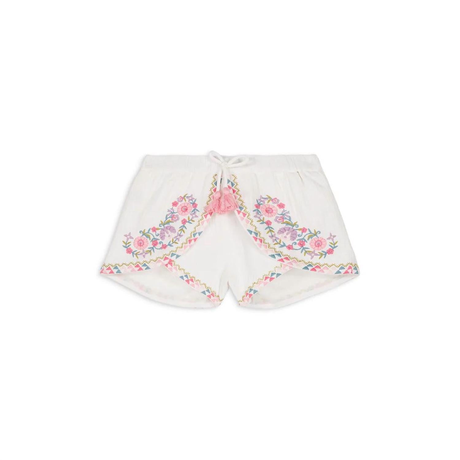 Introducing the Girls' Asya Gauze Shorts by Louise Misha, a playful piece perfect for a maximalist spring aesthetic. In a charming patterned white, these shorts are designed for joyful adventures and vacation wear. Enjoy the convenience of machine wash care with tumble dry instructions, ensuring easy maintenance. Ideal for Easter celebrations and more, these shorts capture the brand's spirit of joyfulness and curiosity.