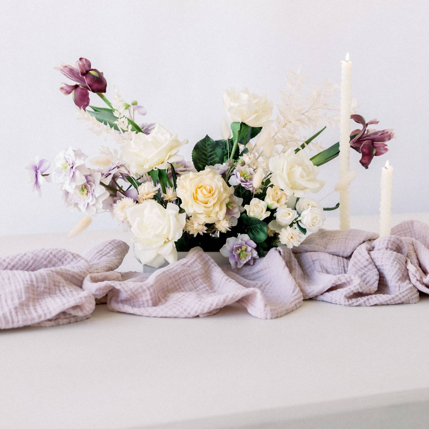 Introducing the Organic Cotton Runner by borrowed BLU, a sophisticated piece crafted from 100% organic cotton in a serene Misty Lilac hue. Designed exclusively by borrowed BLU, this runner measures a generous 156” x 22”, making it a standout addition to any table setting. For care, machine wash on a delicate cycle with cold or warm water, and tumble dry on low. Note that initial washing may cause temporary shrinkage; simply lay and gently flatten to restore its original size.