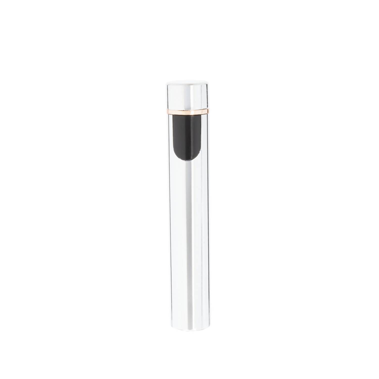 Sleek and compact silver lighter measuring 3.25 inches in length and 0.5 inches in width. Effortlessly ignite with a simple touch, eliminating the need for continuous button pressing. Charge conveniently with the included USB cable, ensuring a reusable and eco-friendly solution. Windproof & Safe. Stay informed with four blue dots indicating the battery status, prompting a charge when needed.