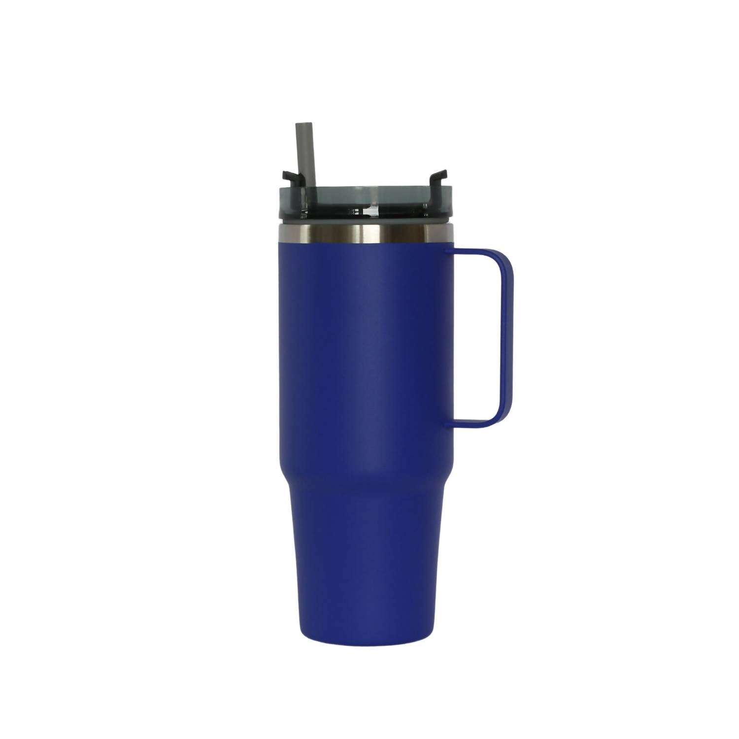 3.5" x 9.25". Capacity: 30 oz. Material: Premium stainless steel. Handle and straw for convenient drinking. Designed for ease and efficiency, this tumbler integrates seamlessly into your daily routine, fitting snugly in standard car cup holders and comfortably in your hand.