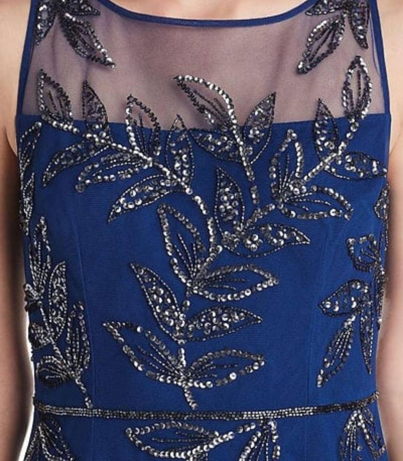 The kind of easy and flattering dress you'll be reaching for all season long. Step into elegance with the Adrianna Papell Sleeveless Beaded Sheath Cocktail Dress in a stunning Night Flight hue. This mini dress is designed for summertime cocktail parties, featuring a captivating patterned flower beaded design. Crafted for a sleek profile, it has a scoopneck, no pockets, and is fully lined for comfort, completed with a zip closure at the back. Perfect for Thanksgiving gatherings or any celebratory occasion.
