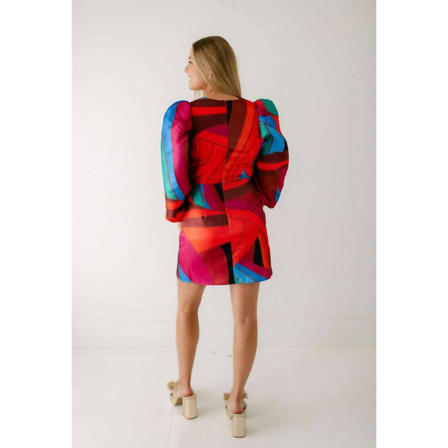 A flattering yet comfortable dress you'll be reaching for season after season. The Bridgette Dress by Alden Adair is a short, lightweight dress with a geometric prism pattern. It has a shift silhouette, V-neckline, long sleeves, and a zip closure. Made from silk soft fall fabric, it offers a luxurious feel and is ideal for warm weather.