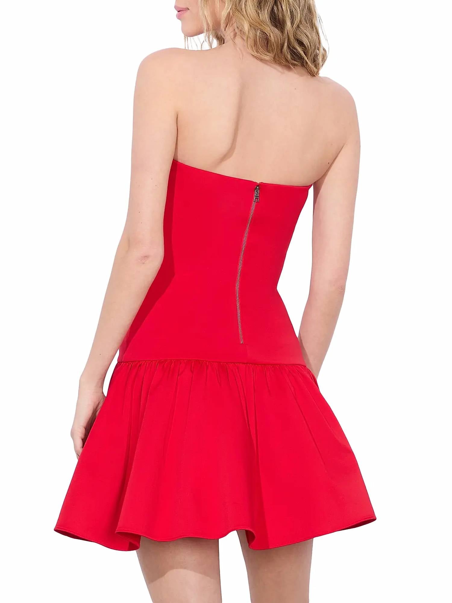 The perfect mini dress for those warmer months. Meet the Oriana Strapless Drop Waist Mini Dress by Alice + Olivia, a stunning piece in Red Ruby that perfectly complements any chic wardrobe. This strapless, A-line mini dress features a drop waist, exuding a blend of elegance and sophistication suitable for dinner parties or Valentine's Day. Made from a cotton blend (97% cotton, 3% elastane) with a solid pattern, it assures a flawless fit with a convenient zip closure. Manufactured without pockets, it should be dry cleaned to maintain its minimalist charm for summer occasions.