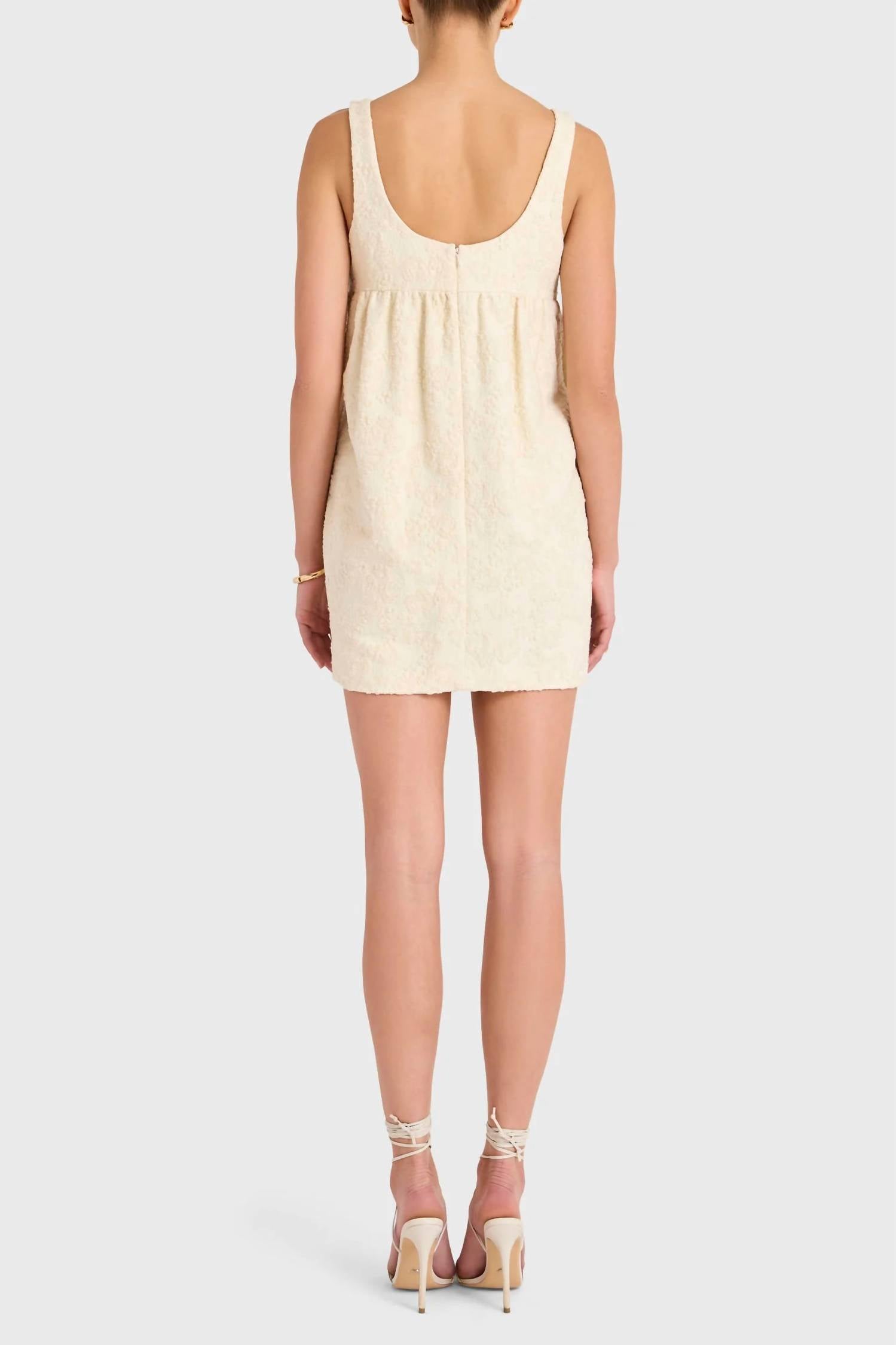 The Bello Scoopneck Mini Dress by Amanda Uprichard embodies a charming babydoll design, perfect for date nights or drinks with friends. This sleeveless mini empire dress showcases a scoop neck and includes convenient sideseam pockets. Crafted from a cotton blend with a composition of 46% Cotton, 36% Polyester, 16% Viscose, and 2% Spandex, it features an invisible back zipper with a hook and eye closure. The dress is lined with 100% cotton, exuding sophistication in beige, and requires dry cleaning to maintain its delicate structure.