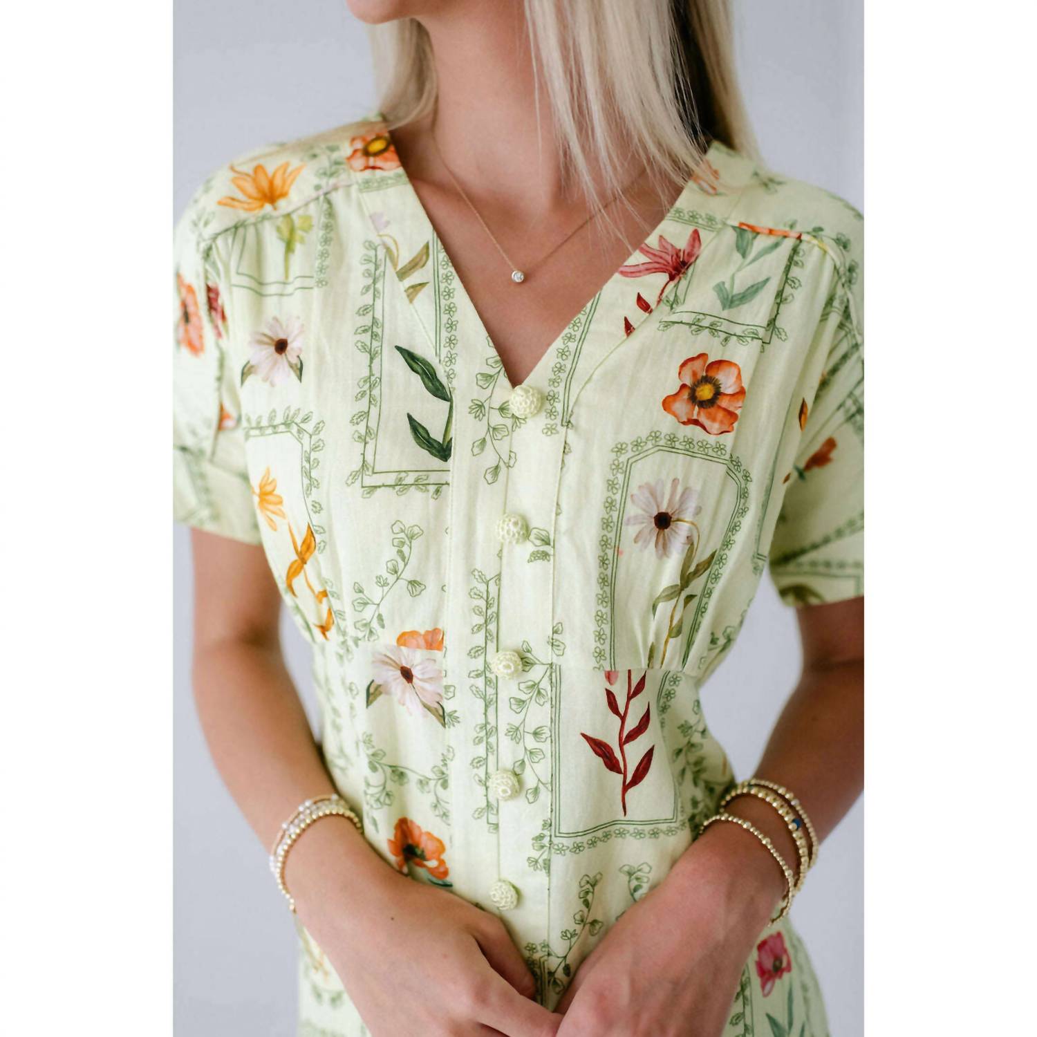 The kind of easy and flattering dress you'll be reaching for all season long. The Kyle Mini Dress by Anna Cate is a vibrant summer piece in a lime floral print, perfect for vacations and Mother's Day occasions. This short-sleeve dress features a V neckline and a fit-and-flare silhouette enhanced by a hidden back zip closure. Made from a breathable cotton and linen blend, it is lined for additional comfort. Care for this dress is straightforward with machine washing on cold settings.
