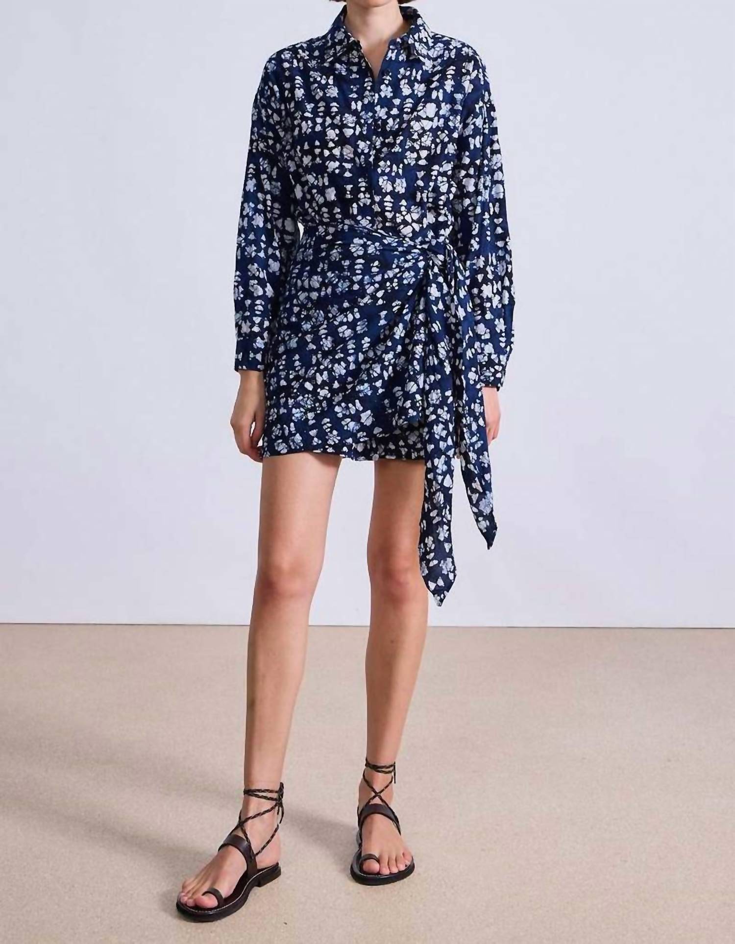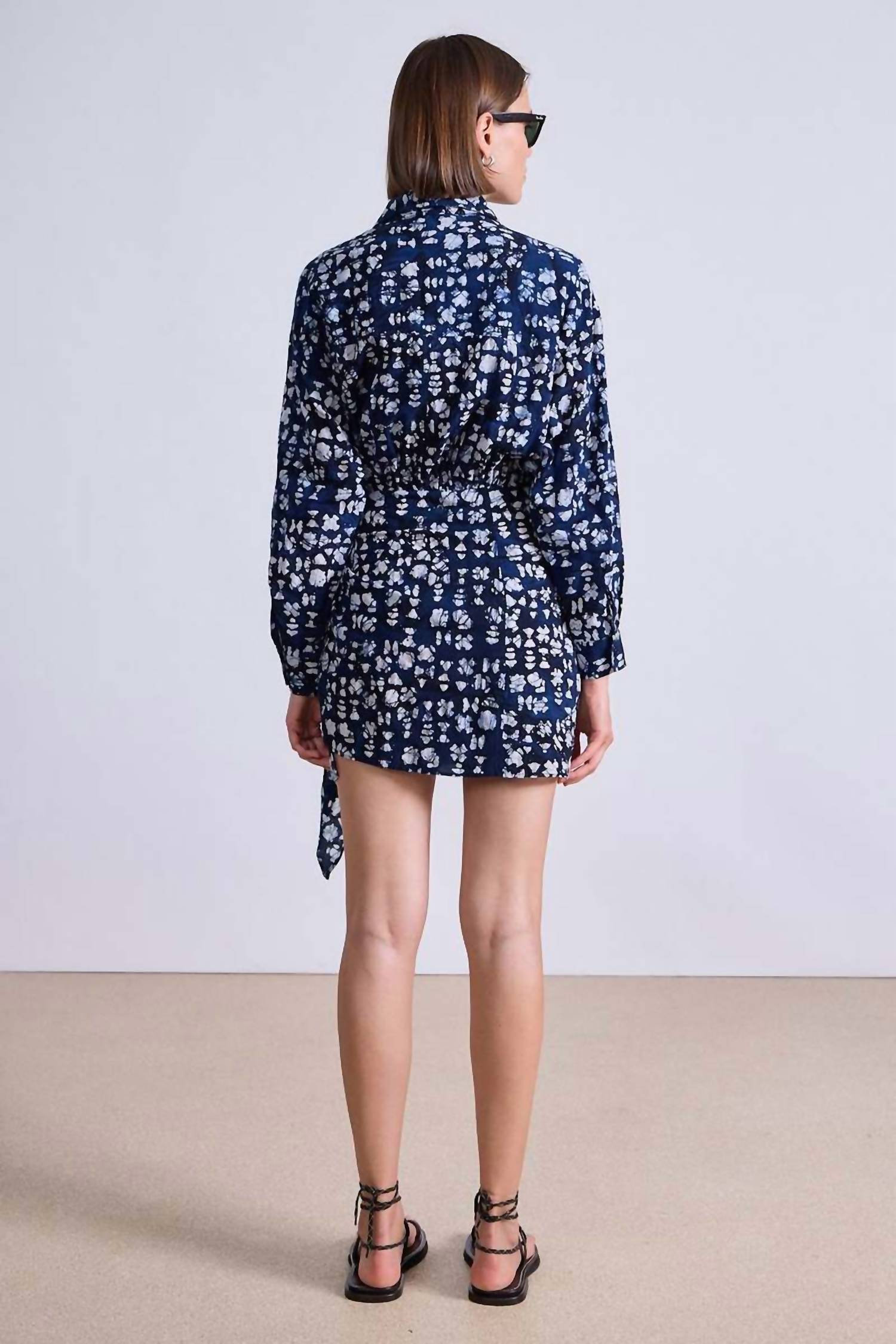 Casual, comfortable and cute! The dress that you'll be reaching for all season long. Discover effortless elegance with the Alessandra Mini Dress by APIECE APART, a Boho Chic gem for your summer wardrobe in a Batik Geo Indigo pattern. This casual A-line piece beautifully combines short sleeves, a shirt collar, and a sarong skirt featuring an asymmetrical drape with a front slit. Made from 100% organic cotton, it's detailed with button closures, offering a sophisticated silhouette perfect for any vacation or Thanksgiving affair. Care for this patterned treasure by dry cleaning to maintain its exquisite look.