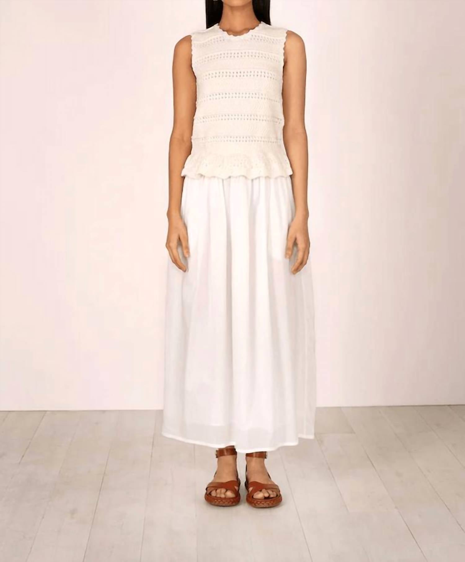 Who doesn't love a good maxi dress? This one you'll be reaching for season after season. The Women's Banjanan Heather Crochet Dress in cream by BANJANAN exudes boho chic elegance perfect for vacation wear. This sleeveless maxi dress is crafted from 100% cotton with a captivating textured pattern, featuring hand-crocheted details that add both structure and charm to an A-line silhouette. Its key features include a scoop neckline and a button closure at the back, seamlessly blending practicality with style. Care instructions are hand wash cold and lay flat to dry, ensuring the delicate craftsmanship is preserved.