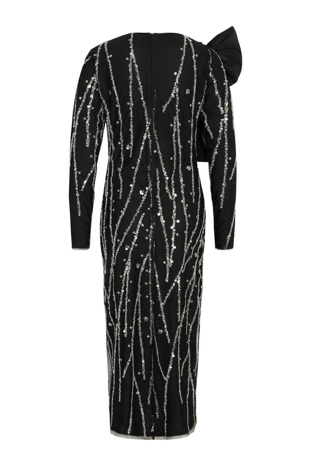 Just add slides or mules and you are good to go. This glamorous gown is crafted from a blend of 90% polyester and 10% PET, offering structure and shine with its all-over sequin embellishment. Designed in a regular fit with light tailoring, it features long sleeves, a high front slit, and a back zipper for easy wear. A detachable bow adds a customizable touch—wear it for added drama or remove it for a more minimalist look. Fully lined for comfort, this dress is perfect for festive occasions and special events, combining elegance with versatile styling.