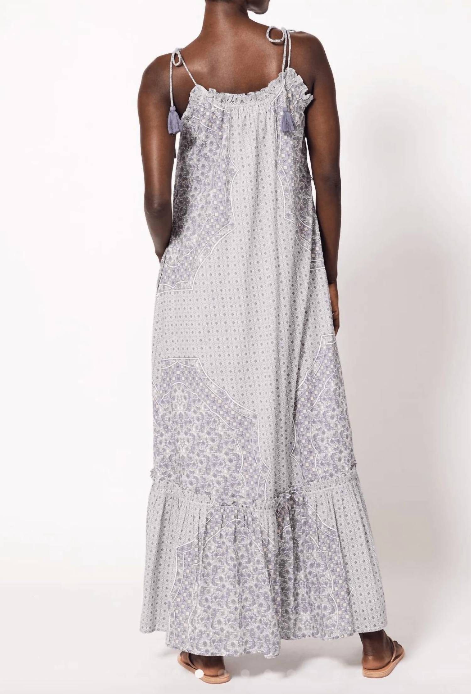 A maxi dress that is just as cute as it is comfortable. Introducing the Cindy Ankle Dress by Cleobella, a statement piece perfect for summer vacations with its spaghetti straps and elegant A-line silhouette. Crafted from 100% GOTS certified organic cotton voile, this maxi dress boasts a scoop neck with ruffle details and adjustable straps featuring rouleaux ties with tassels for a personalized fit. Ethically handmade in India, it includes pockets, a removable rouleaux tie for the waist, and a skirt flounce with mini ruffle details. Care for this dress by hand washing and laying it flat to dry.