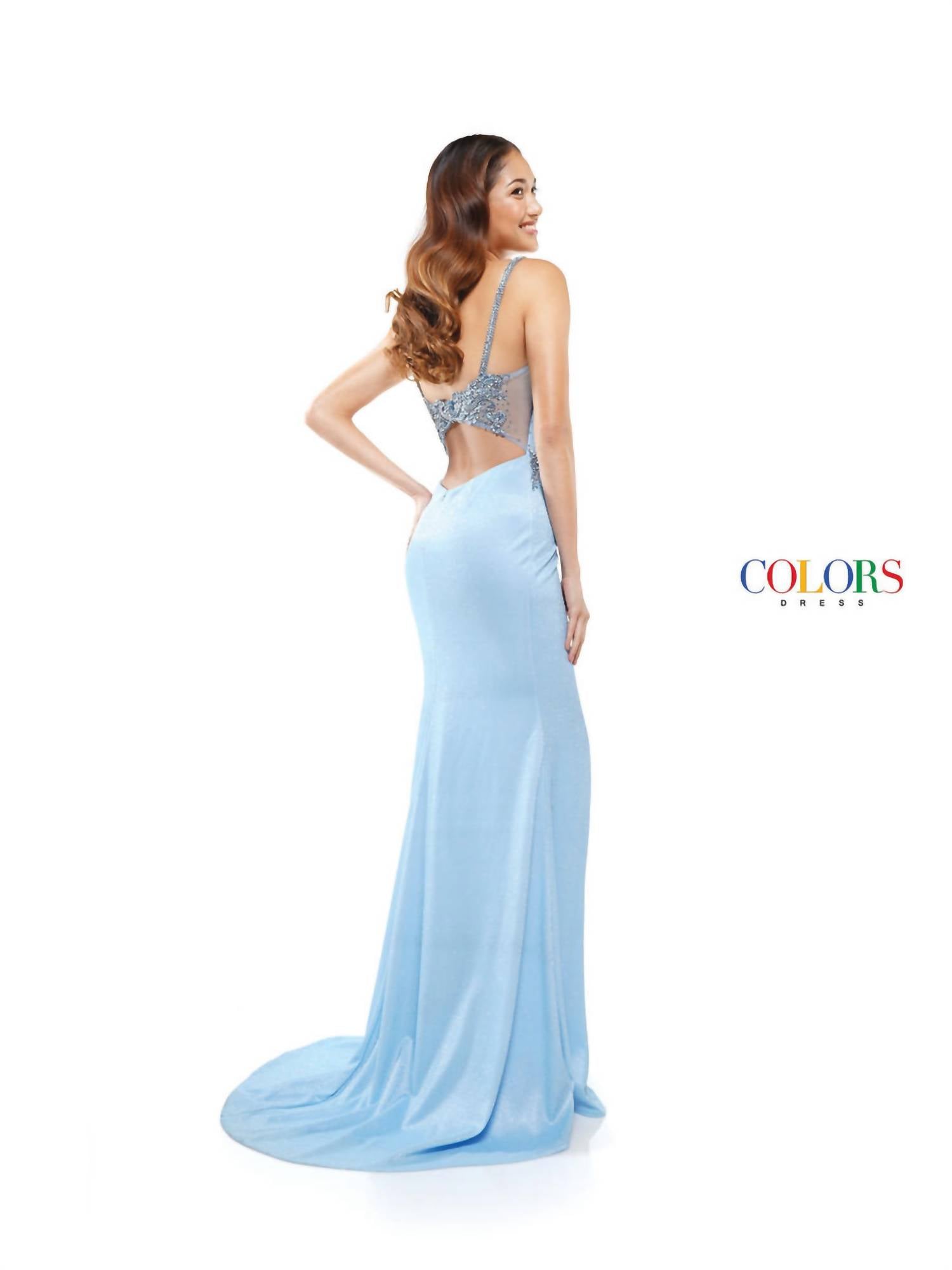 Turn heads in the cutest and most flattering evening dress. Sleeveless V-neck Embellished Long Dress by Color Dress.