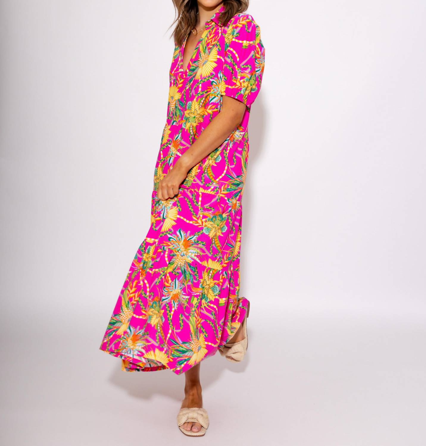 Introducing the Portia Dress by JUDE CONNALLY, a beautifully designed piece in Sundance Paisley perfect for any summer occasion. This casual dress features short sleeves and a V-neck, capturing the boho chic trend with its elegant A-line silhouette. Made from signature Jude Cloth fabric, it is crafted in the U.S.A. with a convenient pull-on closure. Its easy-care, easy-wear design ensures you remain effortlessly stylish and comfortable.